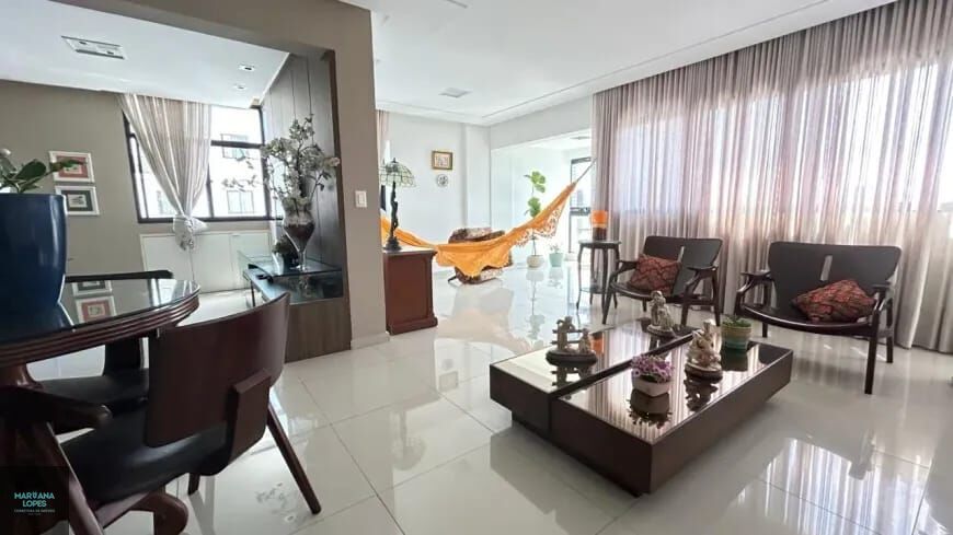 Apartamento com 160 m2, andar alto, vista definitiva, varanda, sala para 03 ambientes, WC social,(1 quarto retirado aumentando a sala), ficando 03 quartos (1 suite ),copa, cozinha, área de serviço, dependência completa, 02 vagas de garagens. Todo o piso em porcelanato, mobília fixa, finamente ambientado.